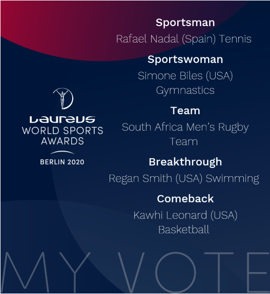Este ano, o Laureus está fazendo algo diferente: quer que os eleitores tornem públicos os seus votos. E compartilhem as escolhas nas mídias sociais, com a hashtag #Laureus20 nas postagens.