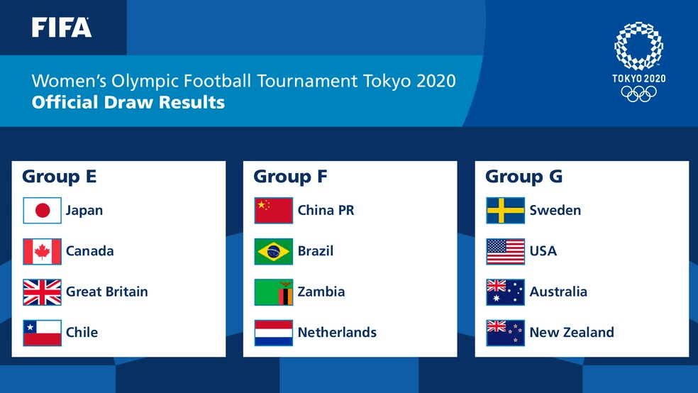 Já a seleção brasileira feminina treinada por Pia Sundhage estreará antes da masculina, no dia 21/7, contra a China, em Miyagi, onde também jogará em seguida, no dia 24/7, contra a campeã europeia Holanda. No dia 27/7, pegará Zâmbia, em Saitama.