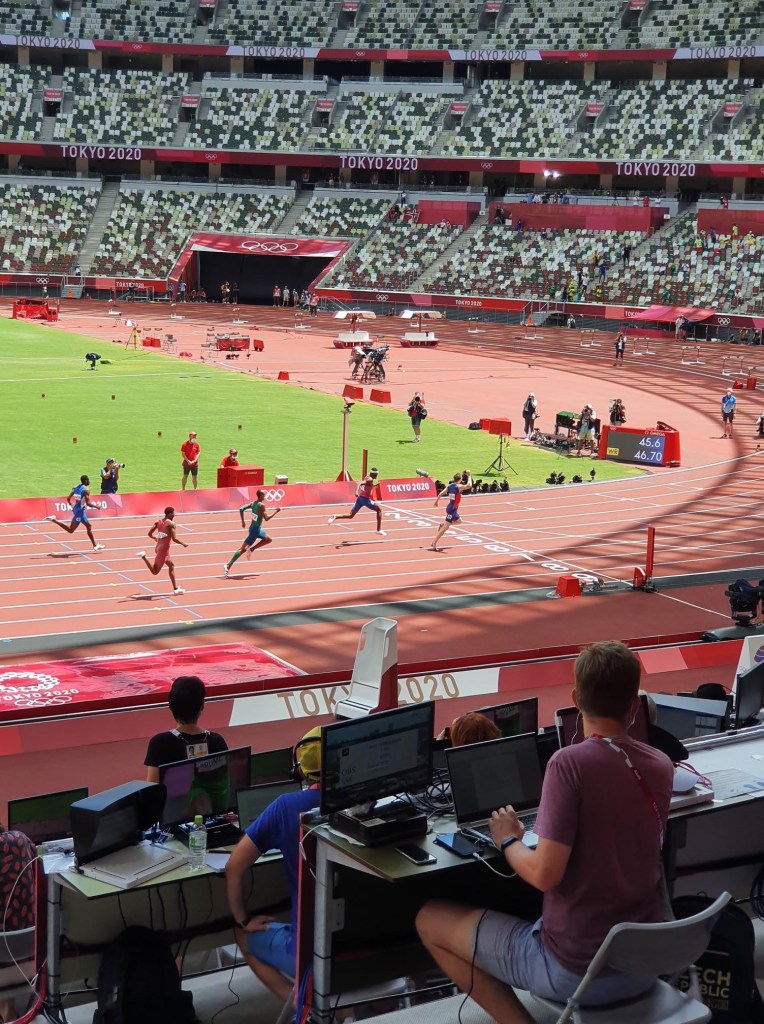 A ficha foi caindo ao me lembrar que eu estava no Estádio Olímpico de Barcelona, quando o americano Kevin Young bateu o recorde mundial dos 400m com barreiras, em sensacionais 46s78. Antes da final desta tarde, aquele tempo permanecia como recorde olímpico. Hoje, neste 3 de agosto de 2021, quase 29 anos depois, os três medalhistas em Tóquio conseguiram melhorar aquele tempo colossal. Na ocasião, eu me lembro de Young, de 1,93m, ainda batendo na última barreira, o que o impediu de cruzar a linha, certamente, na casa de 46s50.