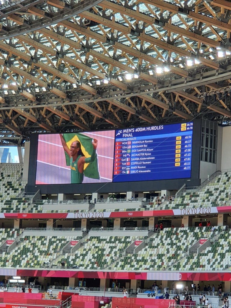 O norueguês Karsten Warholm arrebatou a medalha de ouro, em incríveis 45s92. Pulverizou o recorde mundial que ele mesmo quebrara no último dia 1º de julho, na etapa de Oslo da Liga Diamante. E o americano Rai Benjamin garantiu a prata, com 46s17, a segunda melhor marca de todos os tempos. O quarto melhor tempo da história da prova foi justamente o de Alison, com 46s72, já que o terceiro continua sendo 46s70 do recorde mundial anterior de Karsten Warholm.